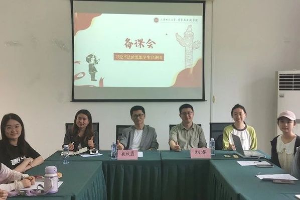 5月19日,哲学与法政学院习近平法治思想学生理论宣讲团备课会在行政楼116会议室举行。哲学与法政学院党委副书记、副院长姚秋磊出席会议,哲学与法政学院法律系讲师刘睿受邀作专题指导,哲学与法政学院团委副书记、2024级辅导员王壬君以及宣讲团成员参加会议。