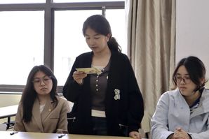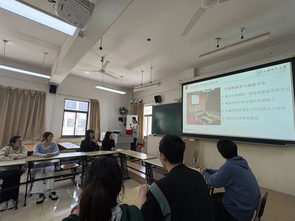 学生代表结合自身实践分享感悟。2024级法学1班迪丽妃热讲述在奉贤区养老院普及反诈知识、帮助老人识别诈骗陷阱的经历,表示“青年的担当就是让法治温度浸润每个角落”;2024级社会工作1班方萤分享参与社区模拟法庭调解物业纠纷的体会,认为“从书本走向实践,才真正读懂法治为民的意义”。同学们深刻认识到,无论是关心国际交流合作、发出中国青年之声,还是投身基层法治建设、维护社会公平正义,都是新时代青年践行五四精神的具体体现。在全球化背景下,青年学子应具备国际视野与法治思维,以智慧和担当应对各类挑战,推动构建人类命运共同体。