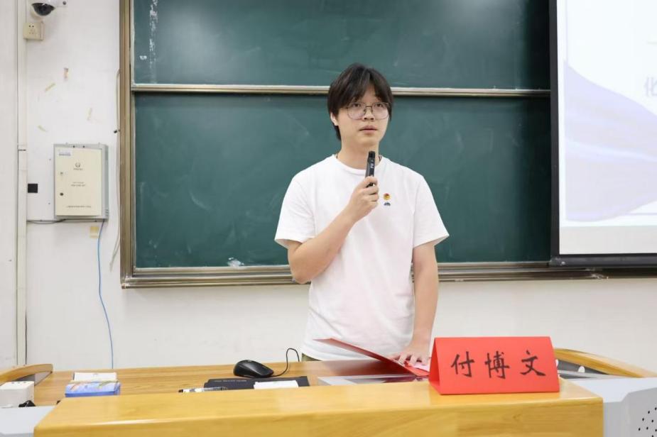 最后,化学与材料科学学院学生会主席团成员付博文做学长寄语。他表示各位团学组织工作人员要系统构建自己的能力体系,快速实现从陌生到熟悉、从适应到胜任的转变。他强调要通过“有效适应的起点”、“主动学习提升自己”、“保持良好协作”三个提升路径,在服务同学、贡献集体的道路上,不断成长为更加稳健、更加明亮、也更加坚定的自己。
