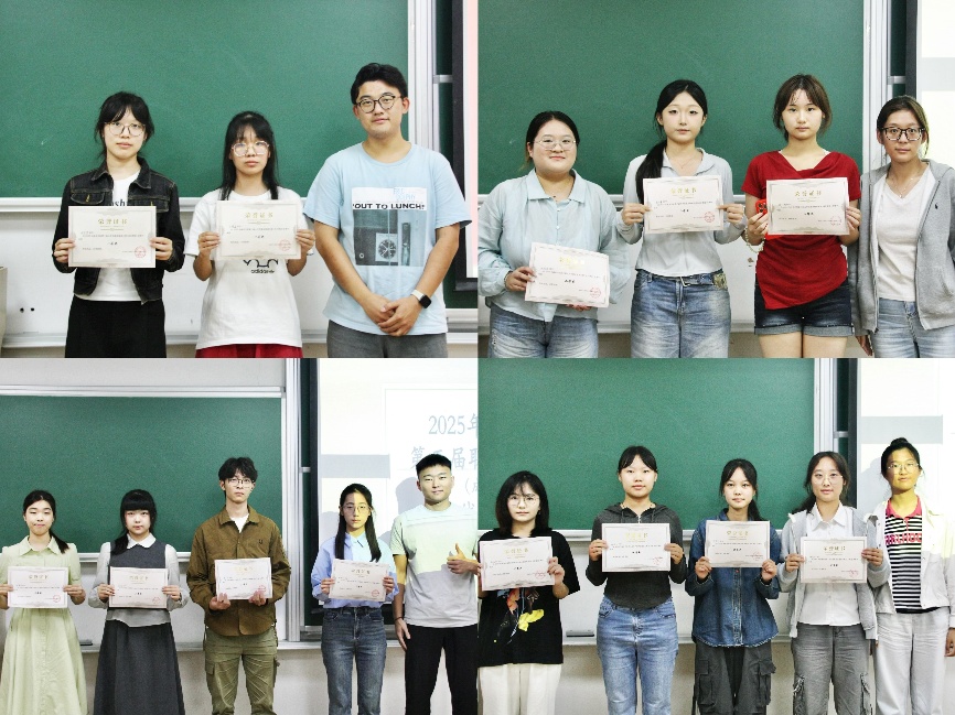 经过激烈角逐,本次比赛最终评选结果为获得一等奖的同学为朱思莹、石菊鑫,获得二等奖的同学为沈怡洁、黎译蔓、徐兴娜,获得三等奖的同学为陈天乐、马玫瑾、张露洋、杜佳苪及优秀奖若干。