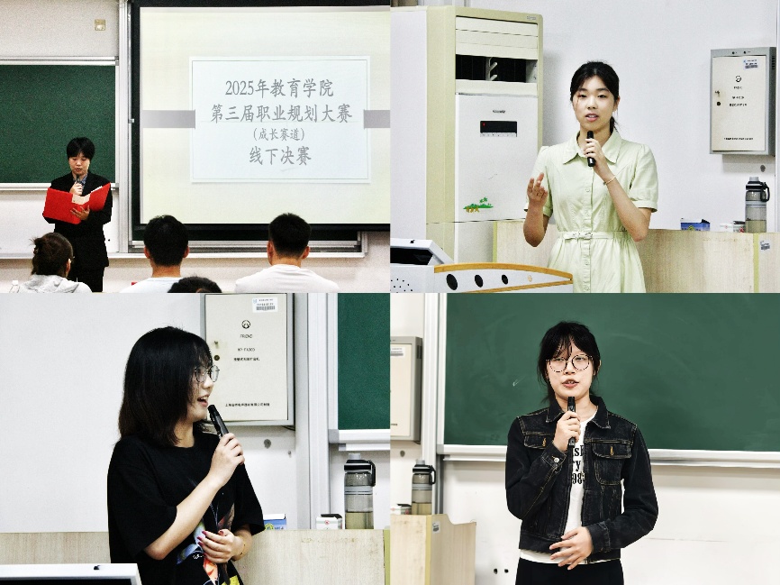点燃职业理想,规划精彩人生。为全面普及大学生职业规划知识,引导学生树立正确的成才观、就业观,科学合理地规划大学学习与生活,10月16日下午,教育学院于5B204成功举办了第三届大学生职业规划大赛的线下决赛。本次比赛邀请教育学院团委副书记、2024级本科生辅导员刘怡轩,教育学院兼职辅导员吴玥霖,教育学院兼职辅导员张宇,教育学院学生会主席团成员钱谨渲作为本次比赛的嘉宾。