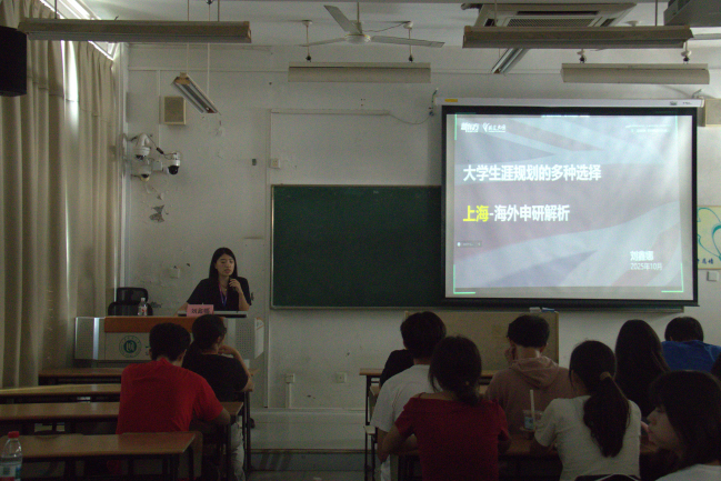 为帮助化材学子明晰生涯发展路径、拓宽海外深造渠道,10月11日13:30,学院于三教201开展海外高校升学宣讲会。本次活动特邀学院办公室外事秘书杨宇、新东方前途出国刘鑫娜担任分享嘉宾,2024级本科生辅导员许芯蕾主持,为在场学子送上满满“留学干货”。