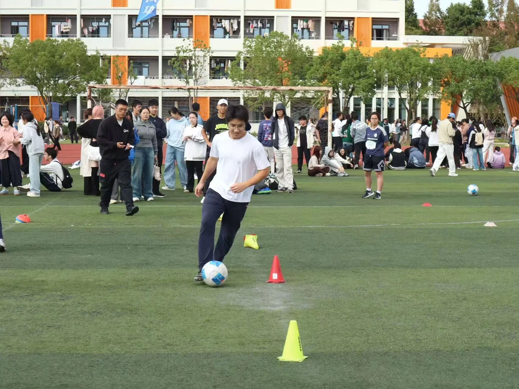 赛场上,“50米迎面接力”的默契配合、“定点投篮”时此起彼伏的喝彩、“足球绕杆”的趣味横生,无不让人忍俊不禁。