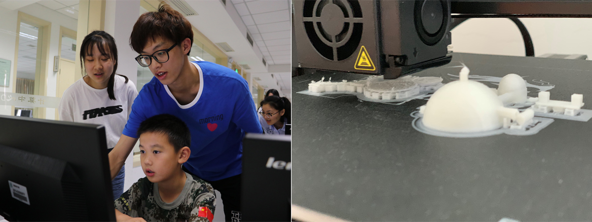 2019年7月1日至5日,作为上海师大志愿服务的传统品牌及师范生“临床实践”培养的创新模式,小学生STEM夏令营爱心学校在上海师范大学奉贤校区成功开办。本次爱心学校由教育学院初等教育系主办,信息与机电工程学院协办,校团委、教务处、上海市儿童博物馆及上海西点军事夏令营支持。爱心学校以“星际探索”为主题,在全市范围内共招募了26名3—5年级的小学生,开展了为期5天的STEM夏令营活动,学习3D打印、机器人编程等多样课程。